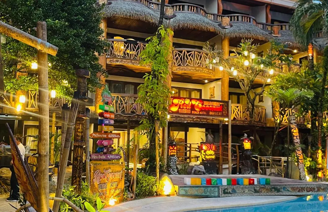 Red Coconut Beach Hotel Boracay Balabag ligger i distriktet Station 2, inom 1 km från Willys klippa och i närheten av D'Mall Boracay. Det erbjuder shoppingområde och restaurang. Detta 4-stjärniga hotell har en pool och 50 rum nära båthamnen.